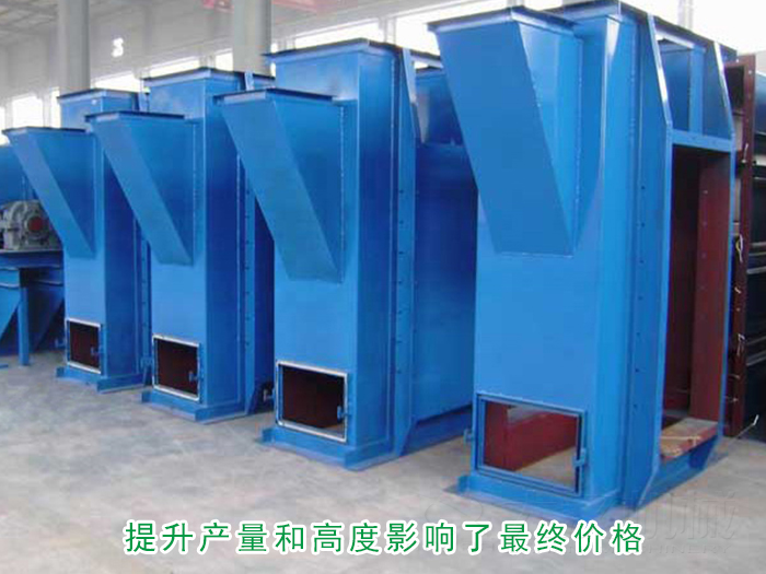 斗式提升機根據客戶不同的提升高度與產量需求價格也是不同的,提升高度越高其采用的鋼材長度與厚度也相應增長增厚,提升產量越大所選擇的型號也就相應越大,所以不同大小的提升產量與高度影響了型號的選擇進而影響了終價格。