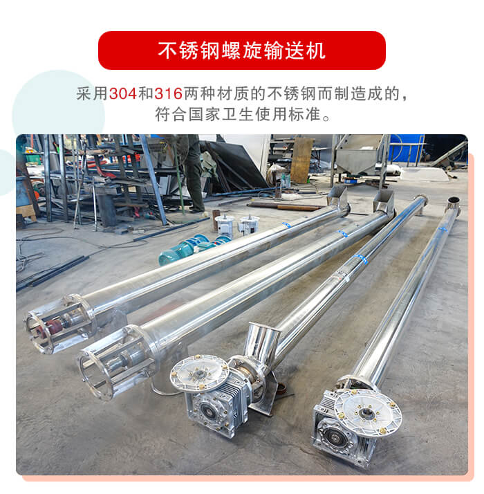 不銹鋼螺旋輸送機不僅能夠輸送物料還能夠,攪拌物料所以其能夠實現物料的均勻的攪拌物料,能夠省去用戶的攪拌環節,所以不銹鋼螺旋輸送機能夠使用到食品行業。