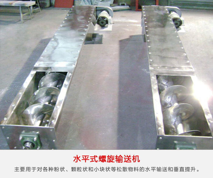水平式不銹鋼螺旋輸送機(jī)是采用水平的方式對(duì)物料進(jìn)行輸送,進(jìn)料粒度可達(dá)每小時(shí)400平方米,能完成60米的長(zhǎng)距離輸送,具有輸送高效、適應(yīng)能力強(qiáng),能夠與多種設(shè)備搭配使用的特點(diǎn)。