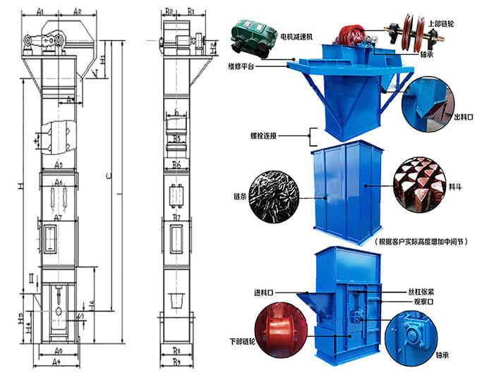 粉TH環鏈斗式提升機型號有TH160、TH250 、 TH315、TH400 、TH500等。同時大漢機械支持產品特殊定做,根據您的要求為您定制出合適的設備!