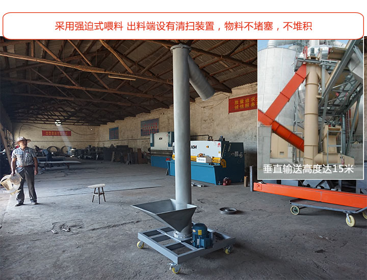 大漢垂直立式螺旋輸送機采用的是強迫式喂料,在出料端安裝有清掃裝置,輸送中物料不堵塞,不堆積;采用垂直(90°)或大傾角輸送,節(jié)省占地面積,垂直輸送高度可達(dá)15米,可根據(jù)需求選擇。