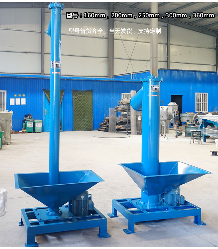 大漢機械的垂直立式螺旋輸送機型號有160,200,250,300,360等5種規(guī)格,且備貨齊全,支持當(dāng)天發(fā)貨;此外,特定型號可根據(jù)用戶描述需求,設(shè)計圖紙,進(jìn)行生產(chǎn),如移動式垂直立式螺旋輸送機,專用于不固定場所的物料輸送。