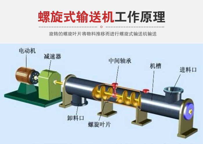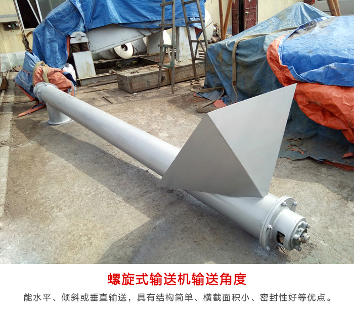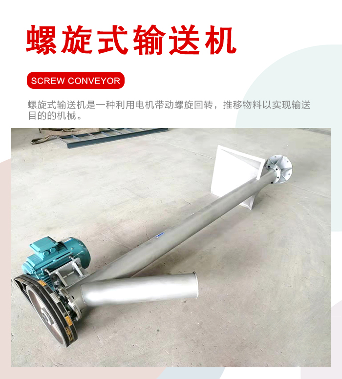 簡介:螺旋式輸送機是一種利用電機帶動螺旋回轉,推移物料以實現輸送目的的機械。