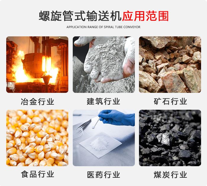 螺旋輸送機(jī)主要用于糧食、建材、冶金、化工、電力等行業(yè)對(duì)粉末、顆?;蛐K狀物料進(jìn)行輸送任務(wù),如水泥、混凝土、飼料、化肥、粉煤灰等物料,不宜輸送易變質(zhì)的、粘性大的、塊度大的及易結(jié)塊的物料。